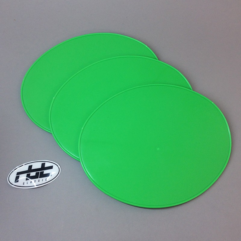 Jeu de trois plaques numéro ovales verteConvient pour toute moto cross/enduro vintage